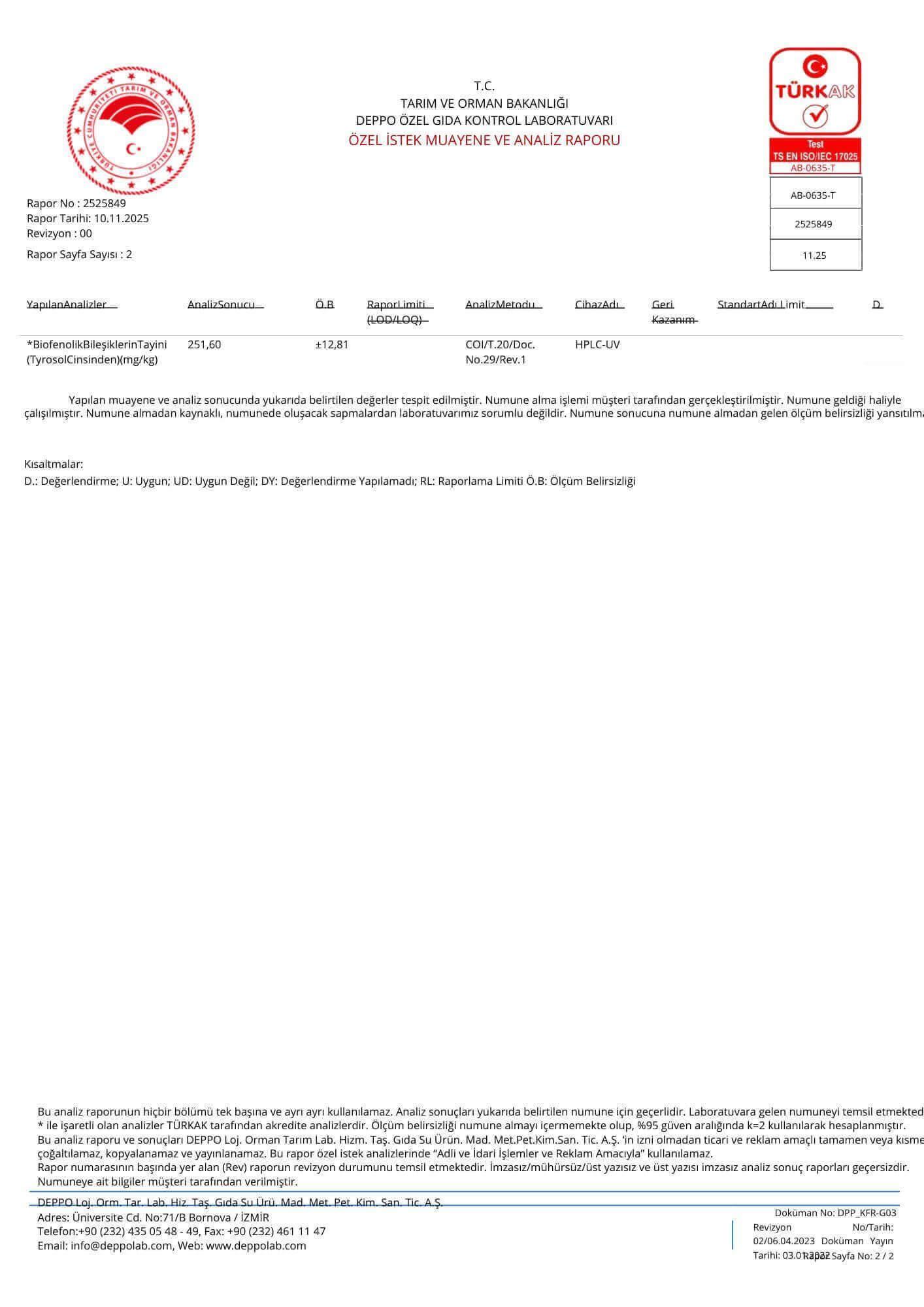 Düşük asit değeri ve içerdiği doğal polifenollerle antioksidan yapısı sayesinde güvenle tüketilebilir. Tüm analizleri yapılmıştır, pestisit içermez.